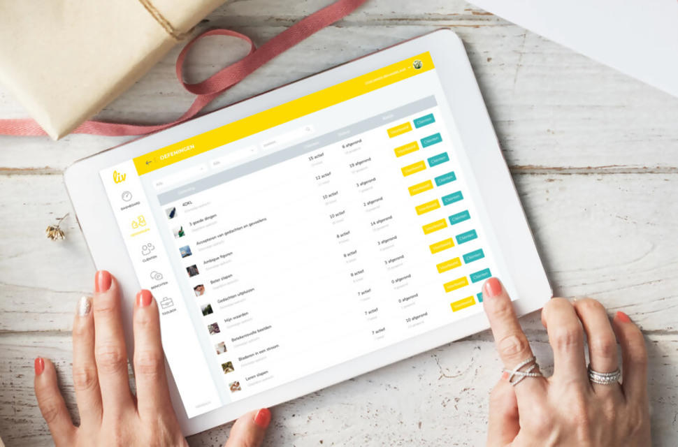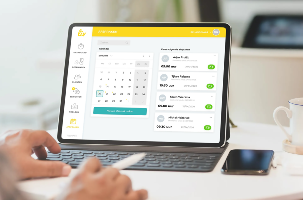 LIV is ontworpen voor de cliënt van nu. Geen langdradige teksten en statische oefeningen maar werken aan jezelf in een overzichtelijk en strak vormgegeven applicatie met oefeningen en online tools van experts uit het werkveld. Oefeningen waarmee de cliënt na een bezoek aan de huisartsenpraktijk verder kan gaan en zo communicatie naar een hoger level tilt.