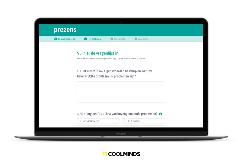 GGZ inGeest is een specialistische ggz-instelling met locaties in de regio Amsterdam, Zuid Kennemerland, Meerlanden en Amstelland. Prezens is onderdeel van GGZ inGeest en biedt hulp aan mensen met psychische problemen. In 2010 lanceerde Prezens de door Coolminds ontwikkelde applicatie Prezensquest. Eind 2020 was deze applicatie dusdanig verouderd dat er besloten is om een nieuwe versie van Prezensquest te ontwikkelen. “Bouw Prezensquest zo na dat al het goede behouden blijft, maar dat wel wordt voldaan aan de modernste standaarden op het vlak van security, techniek, en gebruiksvriendelijkheid.”