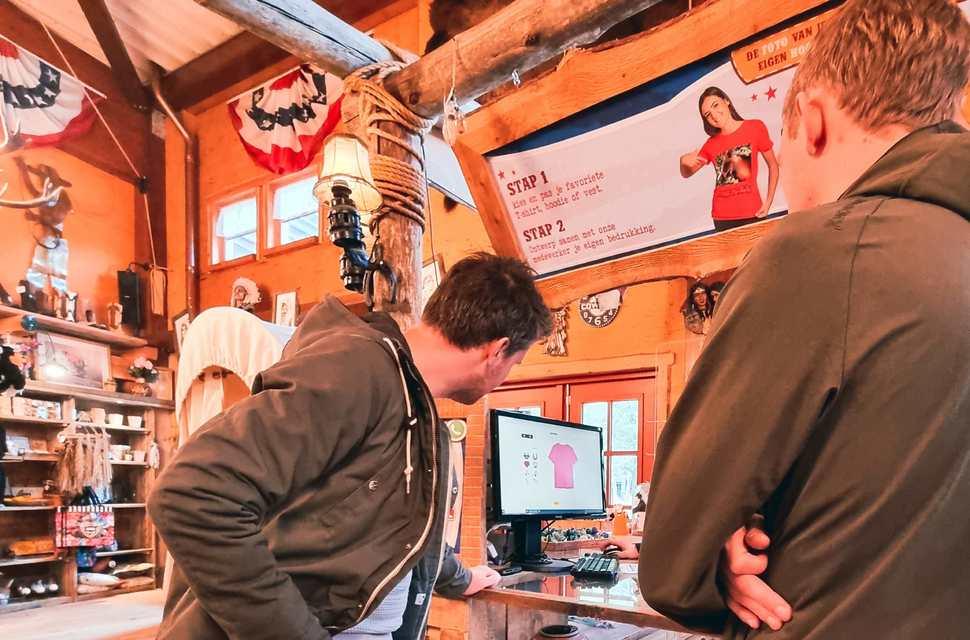 Binnen de Western Store kunnen bezoekers op maat gemaakte t-shirts laten bedrukken. Dit proces was erg bewerkelijk en bevatte een vijftal stappen en medewerkers die hierin betrokken waren. Dit moest en kon anders met als doel: Efficiëntie en Bedrukken op een andere locatie. Gezamenlijk ontwikkelden we een bestelportal. Binnen deze portal wordt het T-shirt design direct gemaakt en kan de klant meekijken op een groot scherm. Het resultaat hiervan is de bestelling die direct in de printer ingeladen kan worden. Klanten worden via e-mail op de hoogte gehouden van het proces en kunnen het bedrukte T-shirt weer in de winkel ophalen. Uiteraard wordt in de e-mailteksten veel aandacht aan de klantbeleving besteed. De ontwikkelde bestelstraat heeft geresulteerd in minder personele inzet, standaardisatie van het proces, meer overzicht en eenduidige communicatie naar klanten.